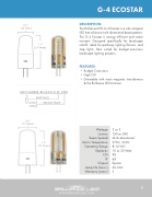 The Brilliance LED G-4 Ecostar is a sub-compact LED that utilizes a multi-directional beam pattern. The G-4 Ecostar is energy ef cient and water resistant. Designed speci cally for landscape retro t, ideal for pathway lighting xtures, and step lights. Best suited for budget-conscious landscape lighting projects.