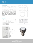 The Brilliance LED AR-11 Double Contact Bayonet has been redesigned to better t into standard, low voltage, AR-11 xtures. These LED’s are thermally engineered to operate in enclosed xtures and provide added security by automatically cooling down (and reducing lumens output) only when exposed to extreme heat (air temperatures above 125◦F). In addition, there is no color shift when lumens output is reduced, and the overall lamp life is improved.
