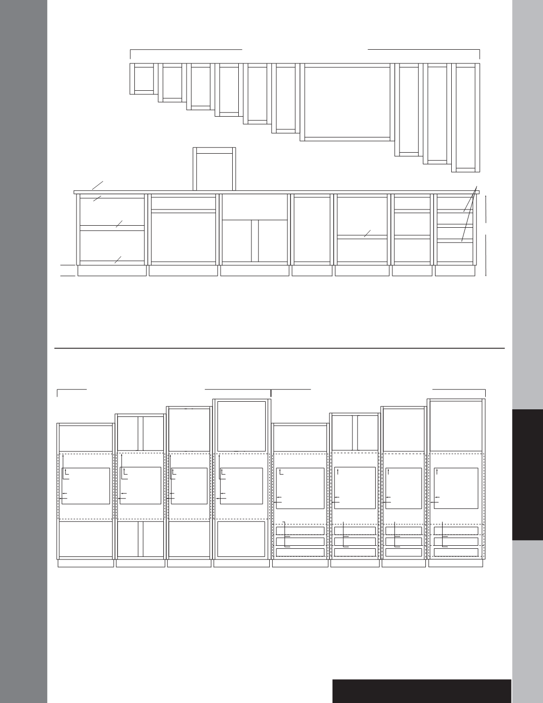 • 3” wide vertical stiles divide double door cabinets, + indicates