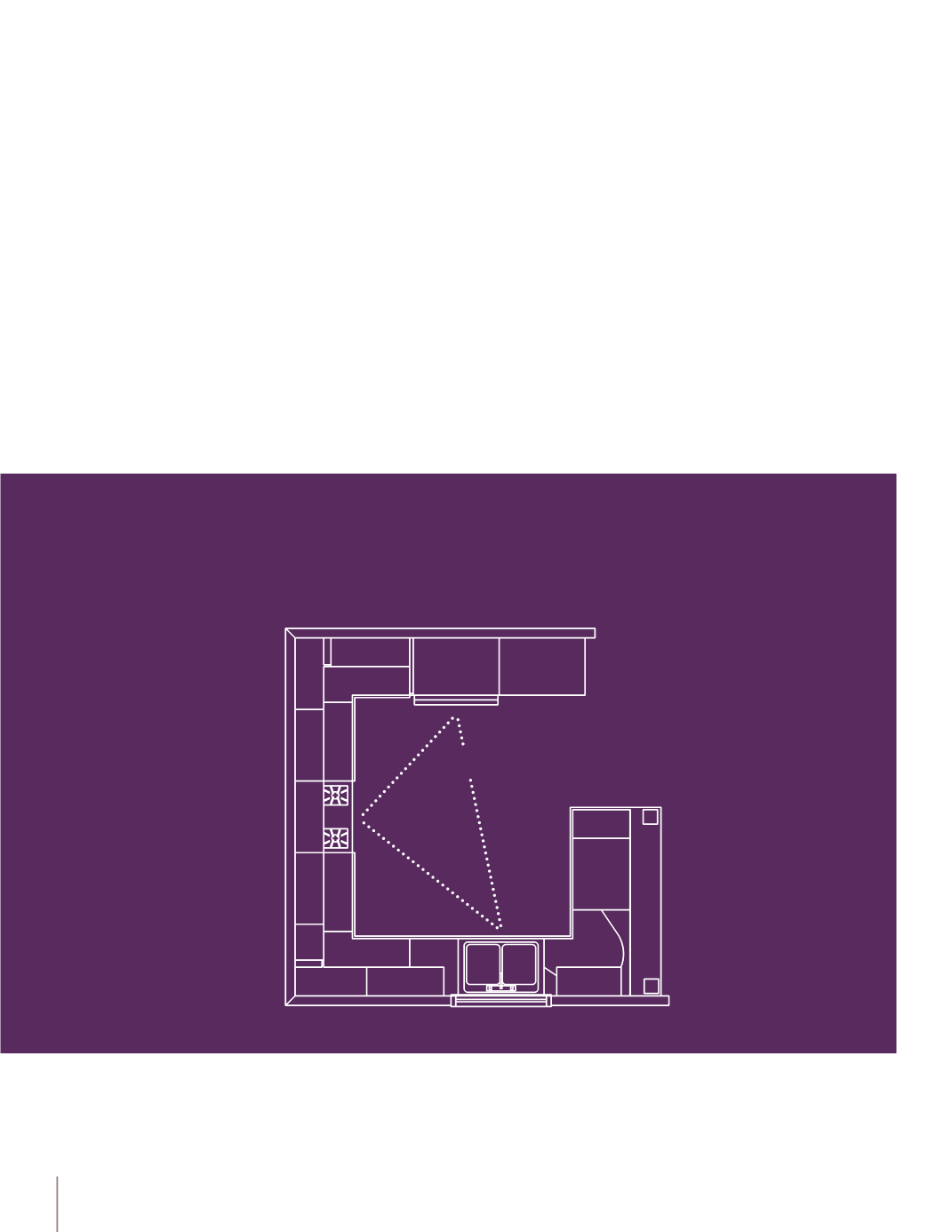 between sink, fridge, and range, in which most of the action in a typical