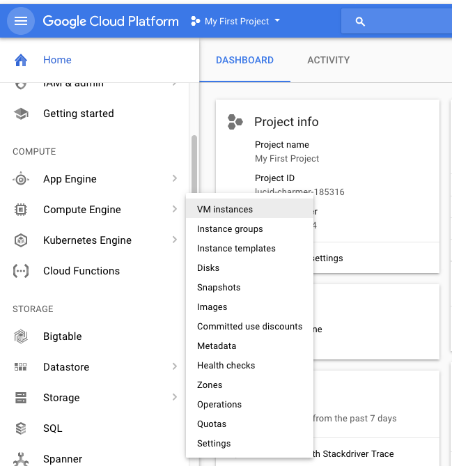 In your browser, log in to the Google Compute Engine Console at https://console.cloud.google.com/.