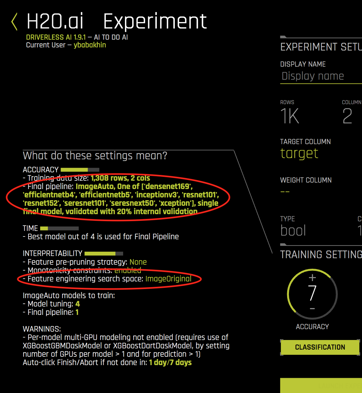 Automatic Image Model uses TensorFlow ImageNet models and starts the training process from them. The possible architectures list includes all the well-known models: (SE)-ResNe(X)ts; DenseNets; EfficientNets; etc.