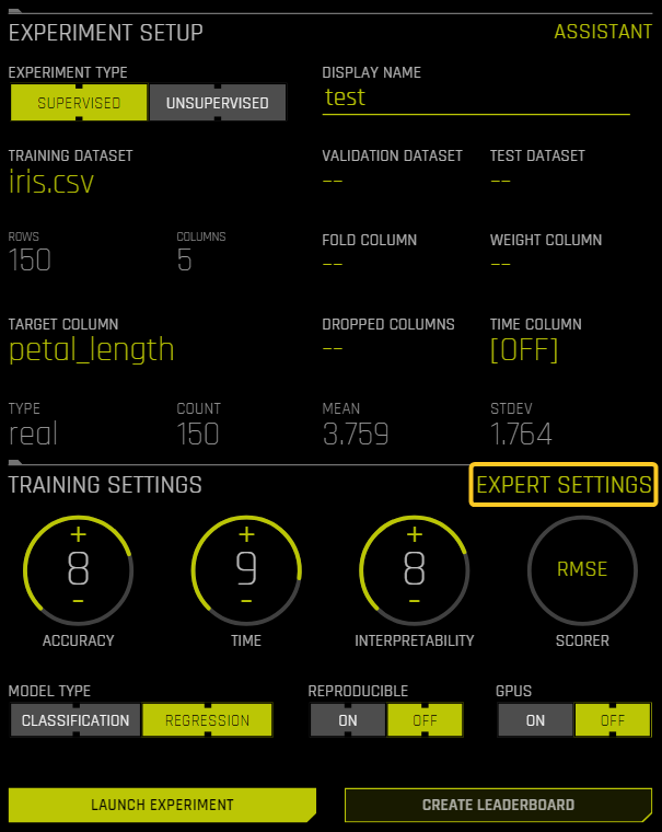 1. On the experiment setup page, click Expert Settings. The Expert Settings window is displayed.