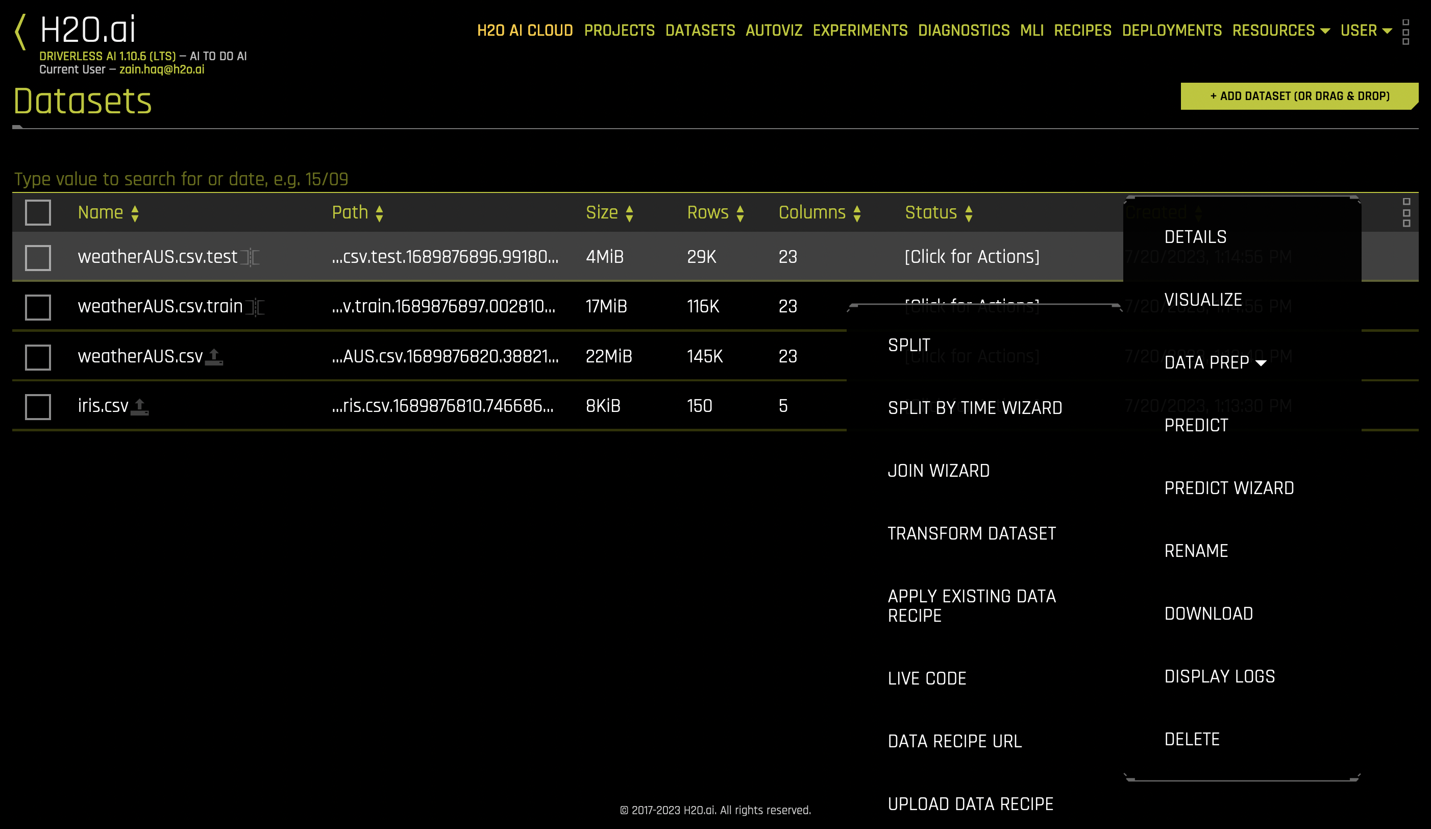The Datasets Overview page is the Driverless AI home page. It displays the datasets that have been imported into Driverless AI. Data Connectors can be used to connect to various data sources.