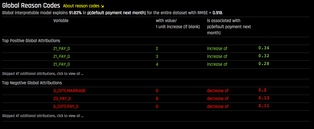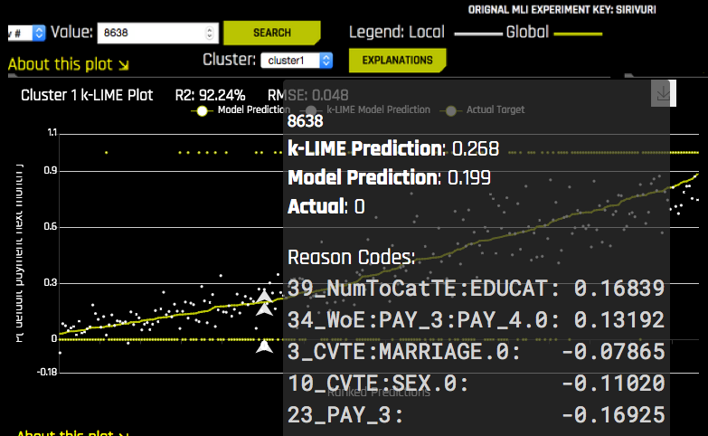 The UI allows you to view global, cluster-specific, and local reason codes. You can also export the explanations to CSV.