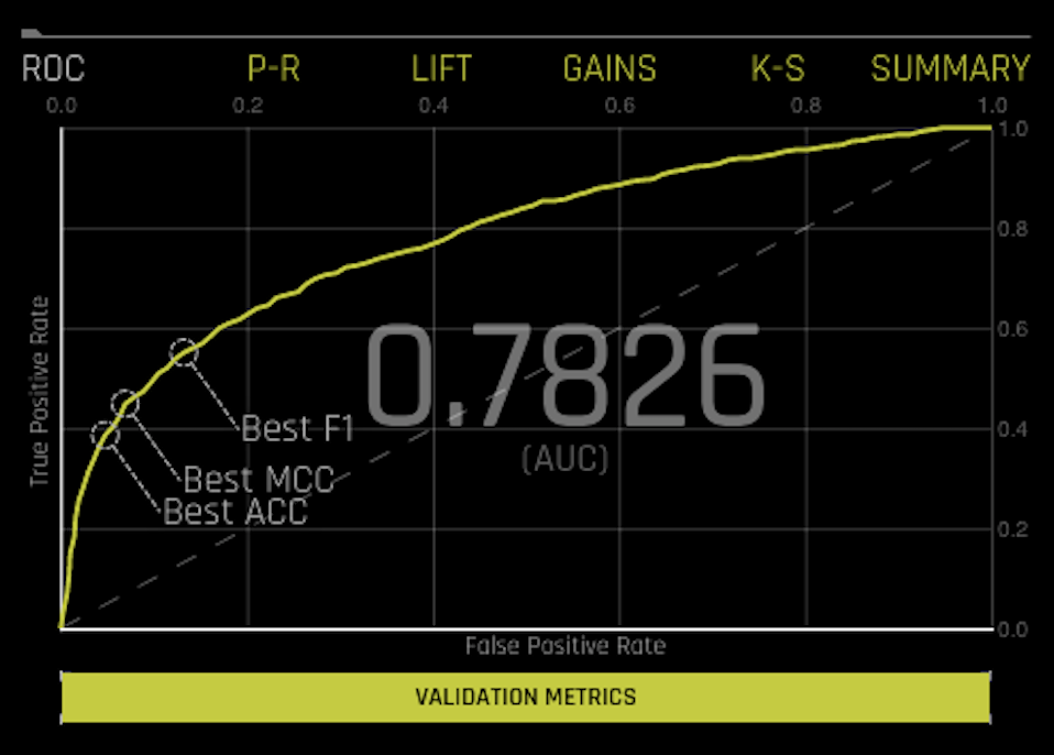 - ensemble_roc: The ROC and Precision Recall table for the internal validation and test data if test data is provided. (Visualization of ROC and Precision Recall curve can be seen in the UI.)