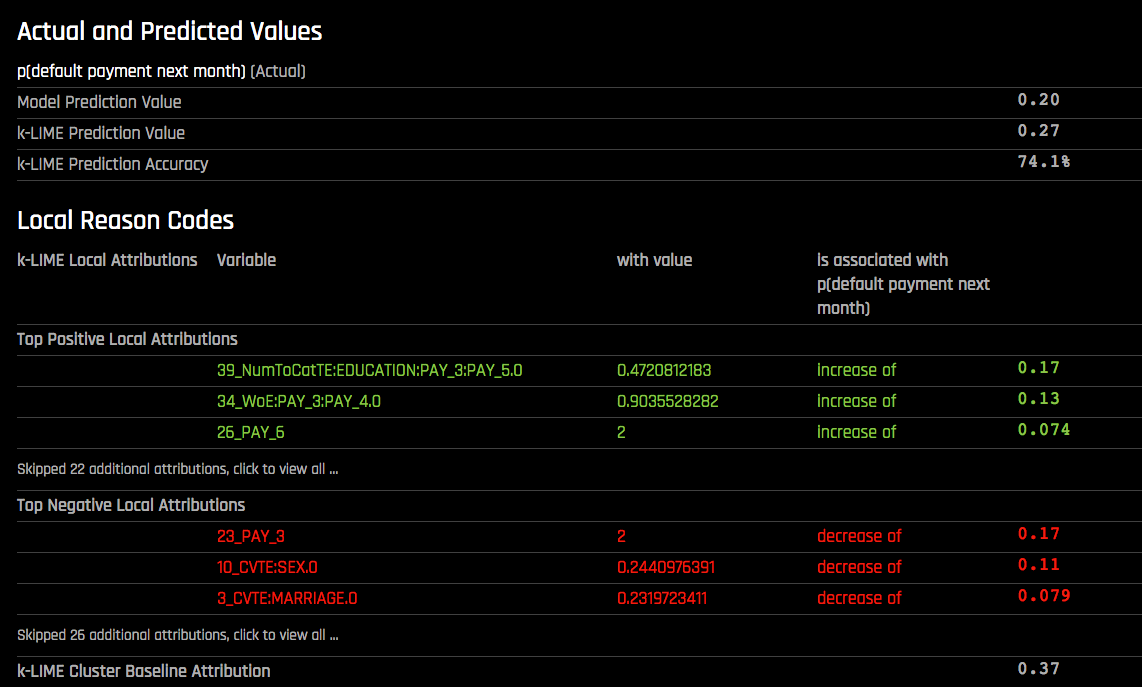 The UI allows you to view global, cluster-specific, and local reason codes. You can also export the explanations to CSV.