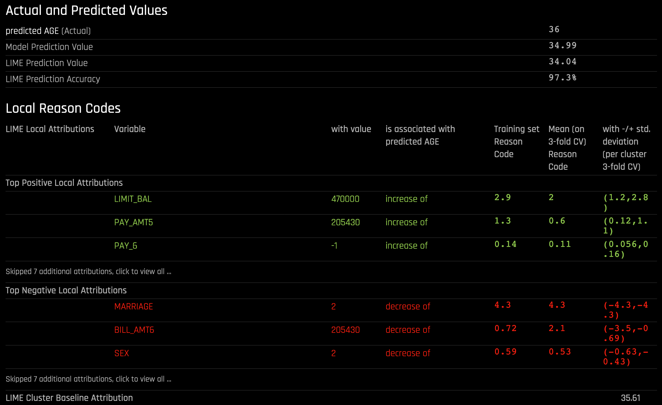 In the following example, reason codes are created by evaluating and disaggregating a local linear model.