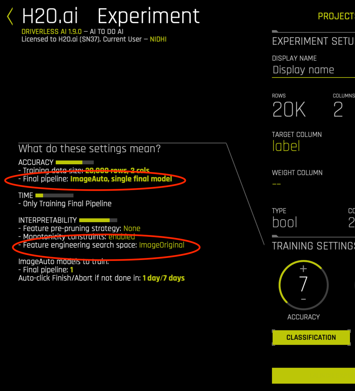 There are several options in the Expert Settings panel that allow you to configure the Image Vectorizer transformer. This panel is available from within the experiment page above the Scorer knob. Refer to Image Settings for more information on these options.