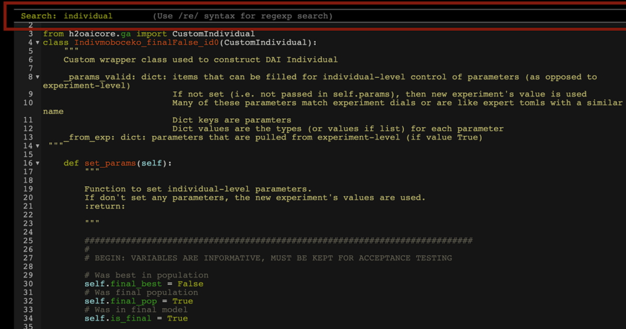 Detail view: This view lets you edit custom recipe code in Driverless AI and save the edited code. The detail view is available for both active and deactivated recipes. For more information, see Detail View.