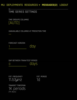Once you have provided the time column, you are asked to fill in time series-specific configurations.