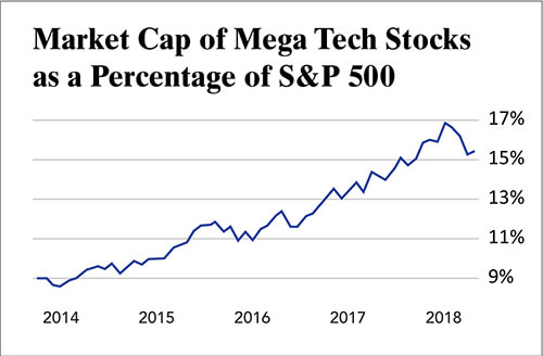 If these companies were a small part of the market, things would be different. Instead, mega techs account for a significant portion of the stock market’s total value. In fact, these five stocks alone account for more than 15% of the S&P 500’s roughly $21 trillion value, with a combined market cap of nearly $3.4 trillion.
