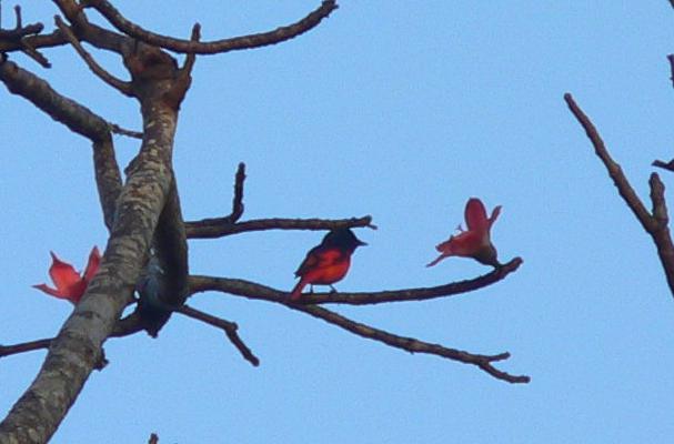 Scarlet Minivet (really, he's there)