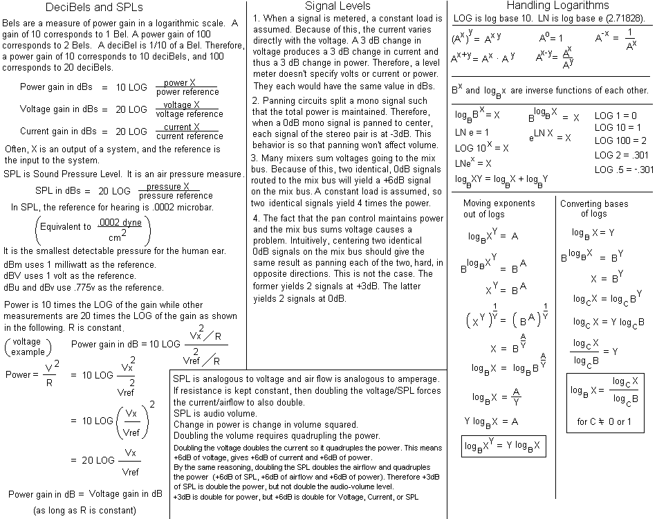 Log, dB, and SPL notes.