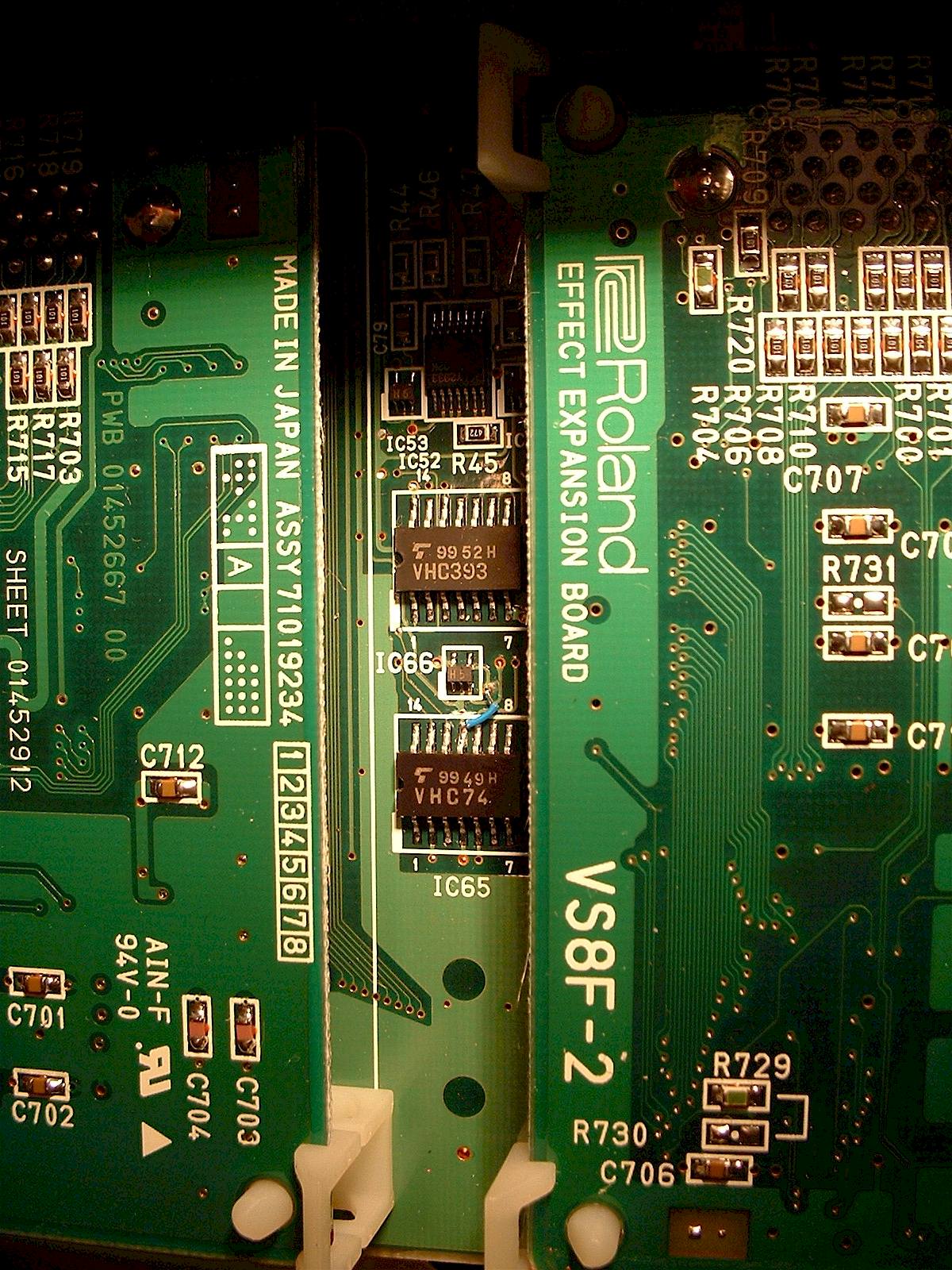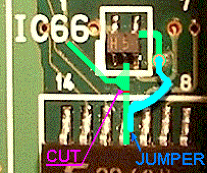 VS1880 Noise Mod. This is the Roland approved repair to get rid of the pops and clicks on the VS 1880 digital recorders. It is detailed in Roland Technical Document #101450. One trace gets cut. One jumper is added.