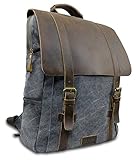 - ECHT LEDER RUCKSACK: Der Canvas Rucksack besteht neben dem strapazierfähigen Material Canvas im angesagten Vintage Look aus hochwertigem echten Leder.