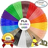 - [Länge und Durchmesser des 3D Stift Filaments]16 Farben; 12.2 Meter (40 Fuß) pro Farbe; insgesamt 195.2 Meter(640 Fuß ) PLA Filament, Durchmesser des Filaments: 1,75mm(Dimensionsgenauigkeit +/- 0,05mm).Geeignet für Plusinno, Victorstar, Uvistare, QPAU, Juboury, Nexgadget, MOHOO, YESTECH, SUNLU, ohCome, 7TECH, Kozy Life, und Lauva 3D Drucker Stift.