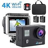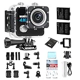 - 【Zubehör】Drei Akkus verlängern die Lebensdauer. Mit dem neu gestalteten, leicht zu öffnenden IP68 40M wasserdichten Gehäuse ist die Kamera ideal für Wassersportarten wie Schwimmen, Tauchen, Surfen etc. Mit all den Zubehör in einer stoßfesten Tragetasche sparen wir Ihnen weitere Kosten.