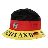 - Mit diesem Deutschland Anglerhut sind Sie bestens für die nächste Fan Party ausgestattet, nicht nur als optimaler Sonnenschutz sondern er zeigt sehr deutlich das Sie ein Deutschland Fan sind. Natürlich in schwarz/rot/gold und mit Deutschland Aufdruck. Material: Baumwolle Größe: one Size