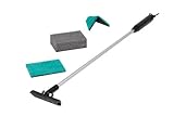 - Bequeme Handhabung: Zugang schwer erreichbarer Stellen durch vorstehende Reinigungskante (z.B. hinter der Technik), Stumpfer Klingenaufsatz für besonder hartnäckige Beläge ( z.B. Kalkalgen), Führung über Ecken ohne Griff ins Wasser