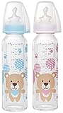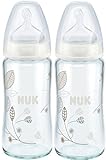 - 2 x NUK First Choice+ Babyflasche aus Glas, 240 ml mit Silikon-Trinksauger 0-6 Monate M (Milch, Milchnahrung), BPA frei