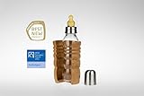 - Die stabile Glasflasche wird von einem soliden Isobecher umhüllt und geschützt
