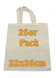 - 25 mittelgroße Baumwolltaschen mit kurzen Henkeln