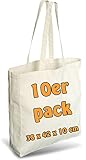 - 10 große Baumwolltaschen mit Seiten- und Bodenfalte und zwei langen Henkeln