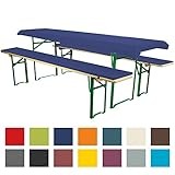 - PASSEND AUF ALLE HANDELSÜBLICHEN BIERBANK-GARNITUREN • 3tlg. Set bestehend aus 2 gepolsterten Bierbank-Auflagen mit den Maßen 220x25x2 cm und einer Biertisch-Husse 220x50x35 cm bzw. 220x70x35 cm.