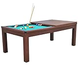 - LUXURIÖS: Der Billardtisch ist aus robustem MDF-Holz gefertigt und mit einem Furnier in Kirschholz-Optik versehen, das wunderbar mit dem grünen Billardtuch harmoniert. Gegen Beschädigungen sind die Ecken mit Edelstahlblechen in Chrom-Optik verkleidet.