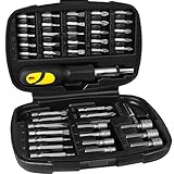 - 38-teiliges Werkzeug-Bit-Set mit Ratsche in praktischer Sortierbox • 36 Schrauber-Bits: 4x Kreuz (0, 1, 2, 3), 4x Innen-Vierkant (0, 1, 2, 3), 4x passend für Pozidriv (0, 1, 2, 3), 12x passend für Torx (5, 6, 7, 8, 9, 10, 15, 20, 25, 27, 30, 40), 5x Schlitz (4, 5, 6, 7, 8), 7x Innen-Sechskant (2, 2.5, 3, 4, 5, 6, 7)
