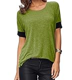 - ZJCTUO Damen T-Shirt O-Ansatz Kurzarm Rundkragen Bunt Atmungsaktiv Mode Tops. Groß, zum als beiläufiges Straßen-Art-T-Shirt zu tragen.Paar es mit Jeans abgeschnitten Shorts und Sandalen für einen lässigen Tagesausblick.Oder kleiden Sie es oben mit dünner Hose und strappy Fersen für eine Nacht heraus auf der Stadt an.