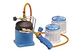 - Die Flammentemperatur liegt bei ca. 1.800 °C bei einem Gasverbrauch von 120 g/h. Die Betriebsdauer beträgt ca. 1 h 40 min; Abmessungen (LxTxH): 23,5 x 12,5 x 13,7 cm. Gewicht 475 g (ohne Kartusche)