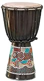- Maße: Die Höhe der Trommel ist ca. 40cm. Der Durchmesser der Spielfläche liegt bei ca. 18-20cm. Das Gewicht der Djembe liegt zwischen 1,5kg und 2kg