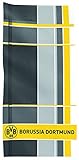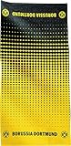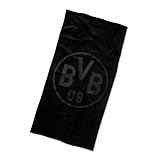 - Das Handtuch zeigt in der Mitte ein großes BVB-Emblem und ist schwarz.