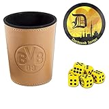 - Becher Kunstoff-Leder mit gebrägtem Logo, 6 Würfel mit BVB Emblem auf der sechs