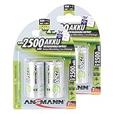 - 4x ANSMANN vorgeladene Akkus Typ 2500mAh Akkubatterien: Diese Akkus haben eine sehr geringe Selbstentladung und sind sofort einsatzbereit. Ideal geeignet für Fernbedienung, Spielzeug, Modellbau, Kamera, Taschenlampe, Uhr, Wecker und sonstige technische Geräte.