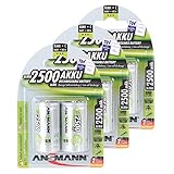 - 6x ANSMANN vorgeladene Akkus Typ 2500mAh Akkubatterien: Diese Akkus haben eine sehr geringe Selbstentladung und sind sofort einsatzbereit. Ideal geeignet für Fernbedienung, Spielzeug, Modellbau, Kamera, Taschenlampe, Uhr, Wecker und sonstige technische Geräte.