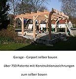 - Unterstand und Überdachung 3x2 m: Konstruktion Kiefer Massivholz: druckimprägniert, gehobelt mit gefasten Längstkanten; die tatsächlichen Maße können gegenüber der Skizze geringfügig abweichen.