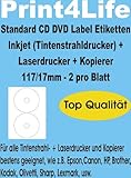 - Weiße, spezialbeschichtete CD/DVD Etiketten, Ø 117 mm, Innenloch: Ø 17 mm, für eine hochwertige und farbige Gestaltung Ihrer CD/DVD.