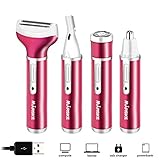 - ♥ 4 In 1 Kit - Multifunktionsrasierer für Frauen - Inklusive Nasenhaarentfernungskopf, Augenbrauenhaartrimmerkopf, Gesichtshaarentfernungskopf, Körperrasiererkopf und Bürstenkopf. Bequemer als andere einzelne Funktion Rasierer.