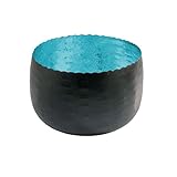 - Maße: Durchmesser: ca. 8 cm - Höhe: ca. 5 cm - Material: Metall / Außenfarbe: schwarz / Innenfarbe: rot - türkis - kupfer - gold - silber