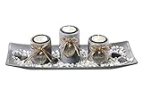 - Das Set von Kobolo besteht aus einem Dekoteller, 3 Kerzenhaltern und den dazugehörenden Dekosteinen