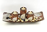 - Die rechteckige Dekoschale aus Holz von Kobolo bringt mit ihren drei Kerzenhaltern ein warmes und gemütliches Ambiente in Ihr Zuhause