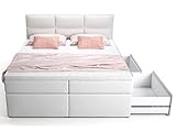 - Boxspringbett mit Schubkästen Viana Kunstleder Weiß • Höhe Kopfteil 117cm • Breite 160cm • Liegehöhe 64cm • Tiefe 206cm