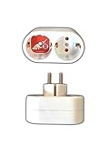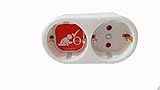 - Adapter mit integrierter Kindersicherung: Kunststoffplättchen verschließen die Kontakte der Steckdose, GS-geprüft