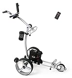 - Gewicht ohne Batterie: 9 kg, Gewicht incl. Batterie: 19,5 kg, Maße gefaltet: 81,5 x 58,5 x 23,5 cm (L x B x H), Maße aufgebaut für Caddieboxen (Griffstange heruntergeklappt): 81 x 58,5 x 78,5 cm (L x B x H)