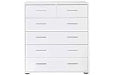 - Die Kommode besticht durch ihr modernes Design mit melaminharzbeschichteter Oberfläche. Damit passt die Kommode in z.B. Wohnzimmer, Kinderzimmer, Flur und Küche. Die Beschichtung schützt zudem die Oberfläche vor Kratzern