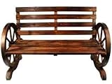 - Wunderschön verarbeitete Gartenbank im Wagenrad-Stil aus Holz in verbrannter Optik Einzigartiges Design für den Garten