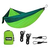 - TOP QUALITÄT UND ULTIMATIVE SICHERHEIT Die YCGRE Doppelhängematte besteht aus einem extrem starken 210T Fallschirm Nylon Material (das gleiche wie Fallschirmspringer verwenden) Für eine lebenslange Haltbarkeit. Dieses weiche, atmungsaktive und schimmelbeständige Material sollte die Sicherheit und die Leichtigkeit des Liegens in der Hängematte gewährleisten. Unsere Camping-Hängematte wurde erfolgreich getestet, um bis zu 600 LBS zu unterstützen, die leicht zwei große Erwachsene aufnehmen
